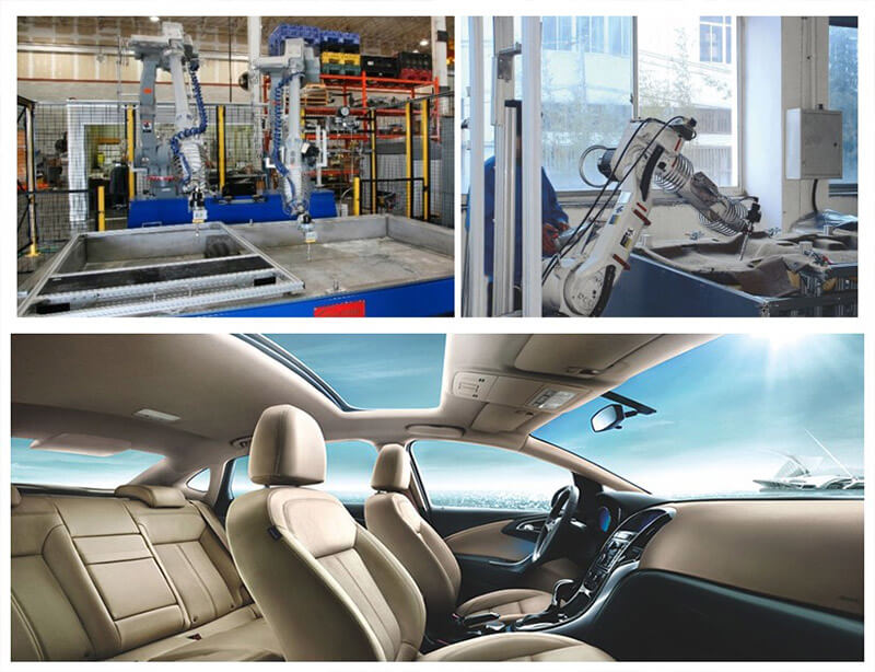 机器人水射流切割系统与磨料切割系列相比具有更快的切削速度。 适用于切割塑料、人造板、泡沫等,特别适用于汽车内饰件制造,机器人水射流切割机系统是汽车顶棚和地毯加工的良好解决方案。