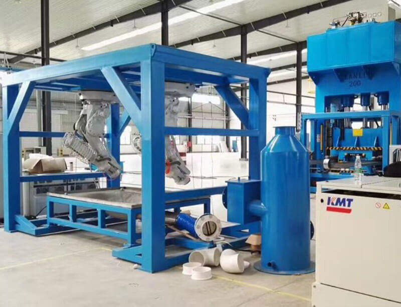 机器人水射流切割系统由机器人系统,超高压系统,软化水处理系统、真空吸附与废物排放分离系统、安全防护系统、电器控制系统、定位模具组成。