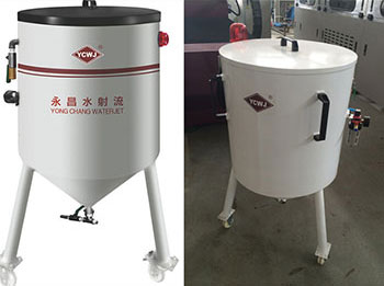 YCWJ自动送砂系统为水切割机提供了储砂和将磨料自动传送到数控工作平台上的砂斗的功能,提高工作效率、减轻操作人员劳动强度的提高机器自动化程度的设计理念; · 操作简单方便,运行可靠,免维护; · 高灵敏度感应器和信号灯指示可提示操作人员何时将砂料加入砂桶; · 170公升的容积可提供连续500至800分钟切割所需的砂量; · 可同时为两台水切割自动供砂) |