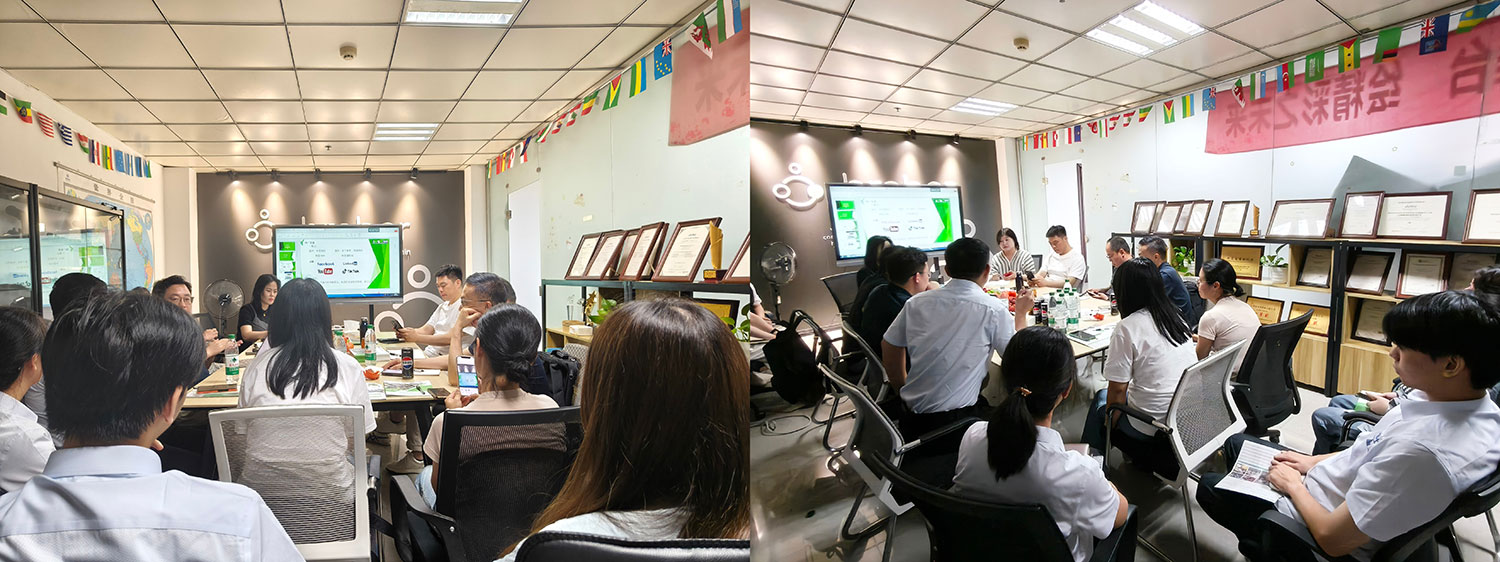 二、研讨内容 1、运营沟通 交流会上,企业代表们围绕外贸运营与业务展开热烈探讨。在平台运营环节,聚焦阿里国际站、谷歌独立站及Facebook、YouTube等平台,深入交流如何优化平台布局、打造优质内容,以此提升品牌曝光度,吸引更多精准询盘、促进订单转化。